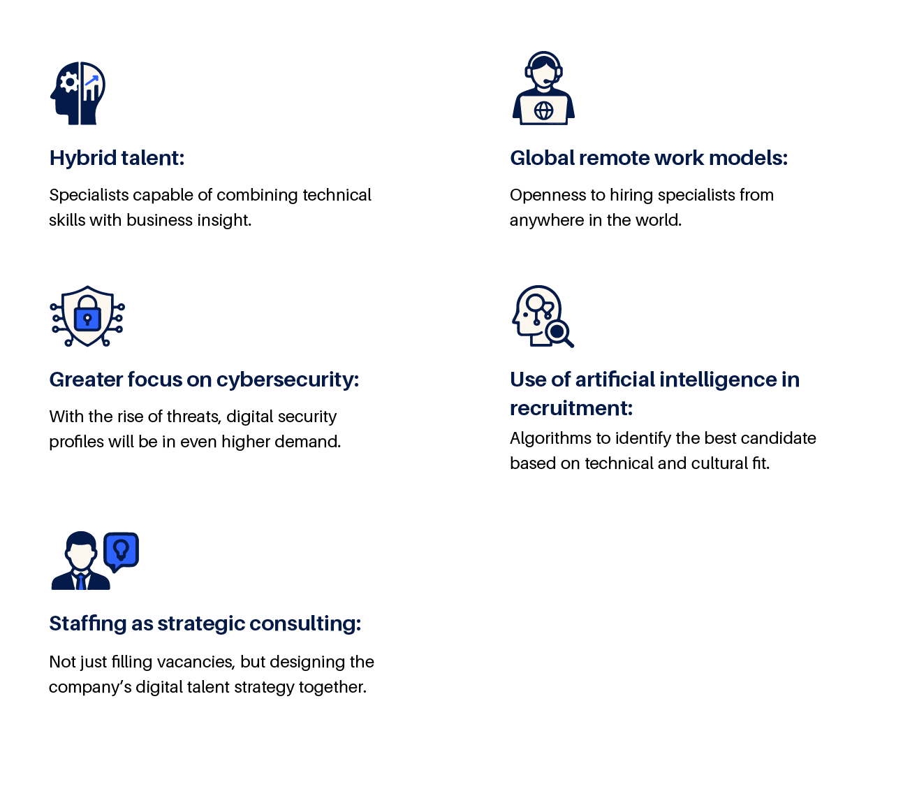 Digital transformation requires speed, innovation and highly specialized talent. IT Staffing is positioned as the ideal ally to bridge the gap between project needs and the availability of professionals in the labor market.