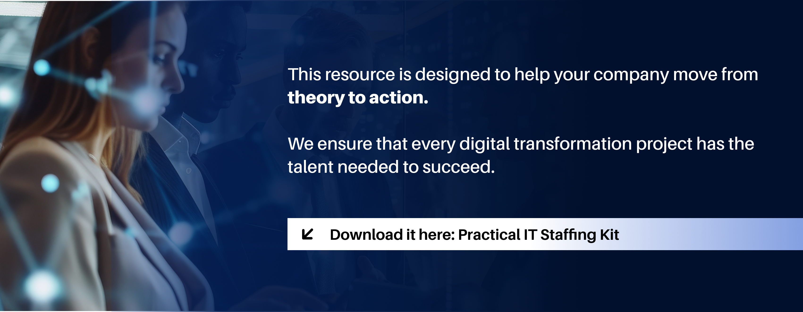 Digital transformation doesn't just depend on technology, but on the talent that drives it. IT Staffing has become a key strategy for accelerating projects, reducing risks and ensuring the necessary specialization at each stage of the process. Discover how this modality is helping companies to execute their digital initiatives with agility, flexibility and measurable results - in addition, download a practical kit to apply this strategy in your organization.
