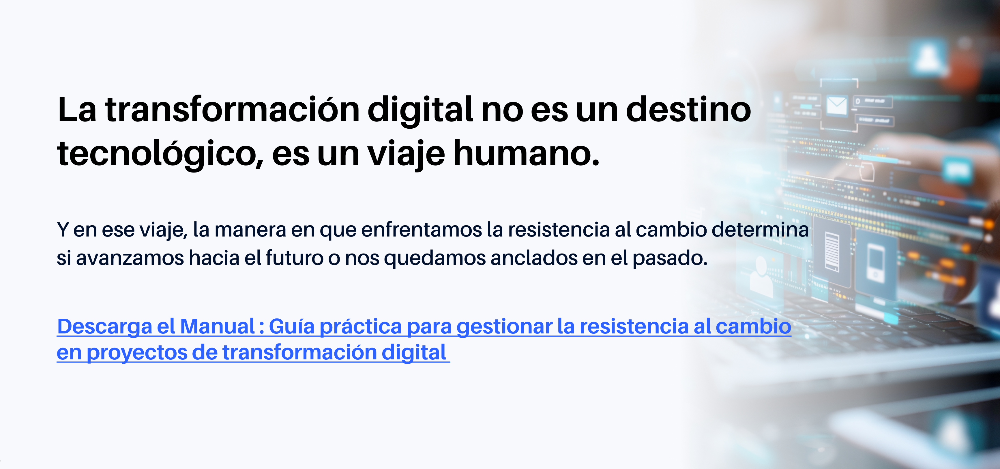 La resistencia al cambio es el mayor desafío oculto de la transformación digital. Descubre por qué surge, cómo se manifiesta en las organizaciones y qué estrategias prácticas pueden ayudarte a gestionarla, desde comunicación efectiva y liderazgo cercano hasta modelos como ADKAR y Kotter. Aprende a convertir la resistencia en oportunidad y a preparar a tu empresa para un cambio sostenible y humano.