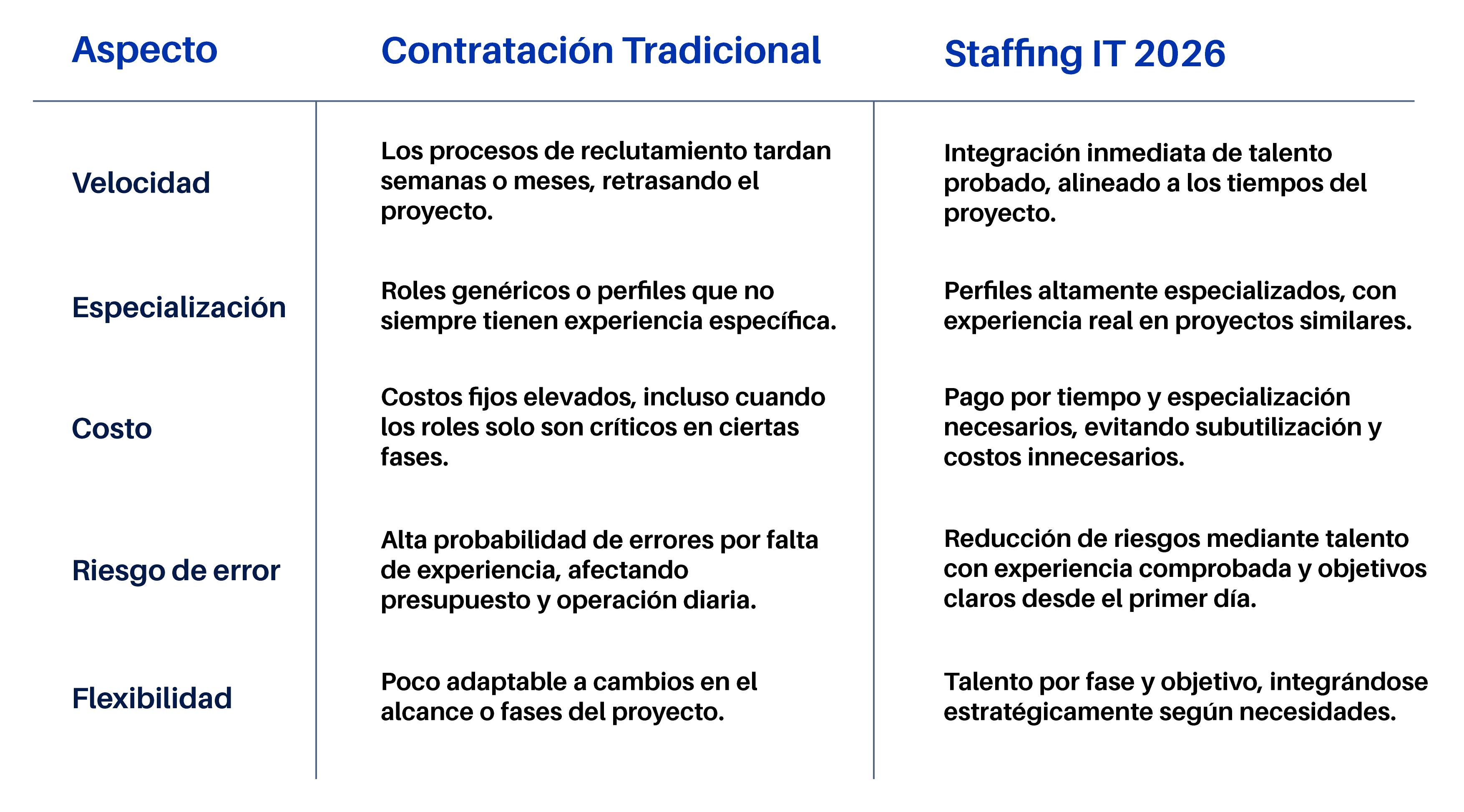 En 2026, la ventaja competitiva no está solo en la estrategia ni en la tecnología, sino en la capacidad de ejecutar rápido y bien. El Staffing IT se ha consolidado como una de las herramientas más efectivas para lograrlo.